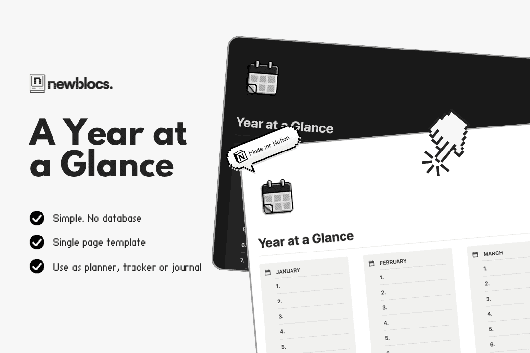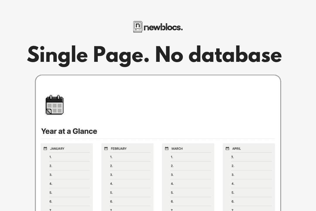 Since this Notion template is database-less, simple, and entirely empty for the whole year, it can also be used for journaling, birthday or event trackers, habit tracking, or anything related to dates! So, use your imagination and do anything you want with it!